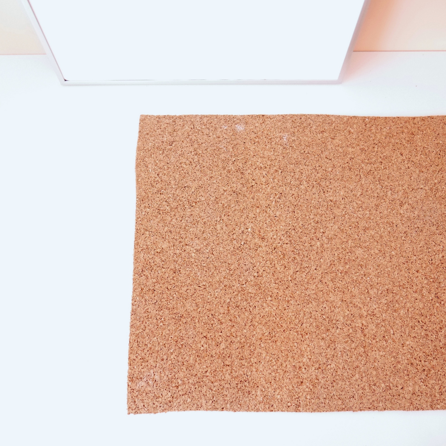 3.Przy użyciu taśmy dwustronnej przyklejamy materiał do korka