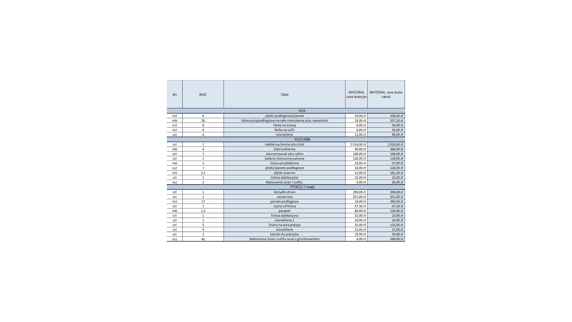 Jak zrobić budżet? Wystarczy Excel, w którym zapiszesz zarówno zakres prac jak i elementy wyposażenia i dekoracje. Ja rozpisałam budżet per pomieszczenie i wypisałam dosłownie każdy element. Jeśli chcesz otrzymać przykładowy szablon budżetu, napisz do mnie -prześlę Ci go w prywatnej wiadomości.